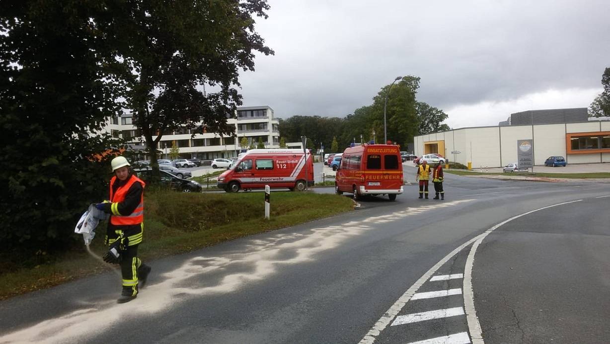 Die Löschzüge Nieheim und Steinheim Freiwillige Feuerwehr beider Städte rückten aus, um die Spur abzustreuen. Außerdem wurde ein Reinigungsfahrzeug des Landesbetriebs Straßen NRW angefordert. Der Verursacher ist bekannt, Details konnten Feuerwehr und Polizei aber noch nicht nennen.