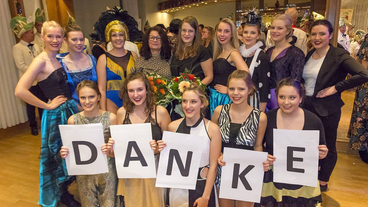 Mit großen Lettern bedanken sich die Formation "Take Drive" um die Initiatorin Sabine Viedt-Kühn und an die aktuelle Trainerin und Tochter Lisanne Kühn für die Auszeichnung mit dem Bumerangorden. | © Marc Schriegel