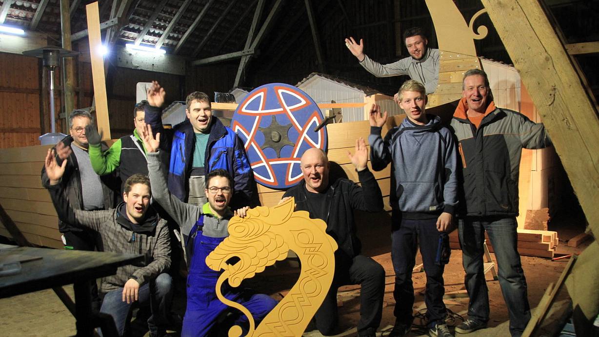 Am Anfang stand eine bierselige Idee einiger Narren beim Karneval im auswärtigen Sommersell im vergangenen Jahr. „Wollen wir einen neuen Wagen bauen, ein großes Wikingerschiff?", fragte Elferrat Phil Wiedeking in die Runde. Trotz des immensen Aufwands ließ der Gedanke die Gruppe einfach nicht mehr los. Eine Whatsapp-Gruppe wurde gegründet, erste schnell zu Papier gebrachte Zeichnungen verschickt. Inzwischen sind es rund 60 kreative Köpfe, die am Bau des riesigen Schiffes beteiligt sind.