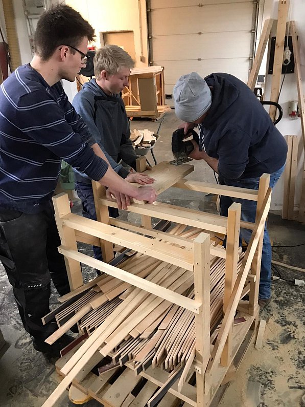 Ab Sommer ging es an die praktische Umsetzung: Zuerst musste Geld besorgt werden – etwa 5.000 Euro, so die erste Kalkulation, würde das Projekt kosten, berichtet Wagenbauer Matthias Peine. Weil sich das Geld nicht in Wikingermanier durch Raubzüge verdienen ließ, wurde eine Crowdfunding-Aktion bei der Vereinigten Volksbank gestartet.