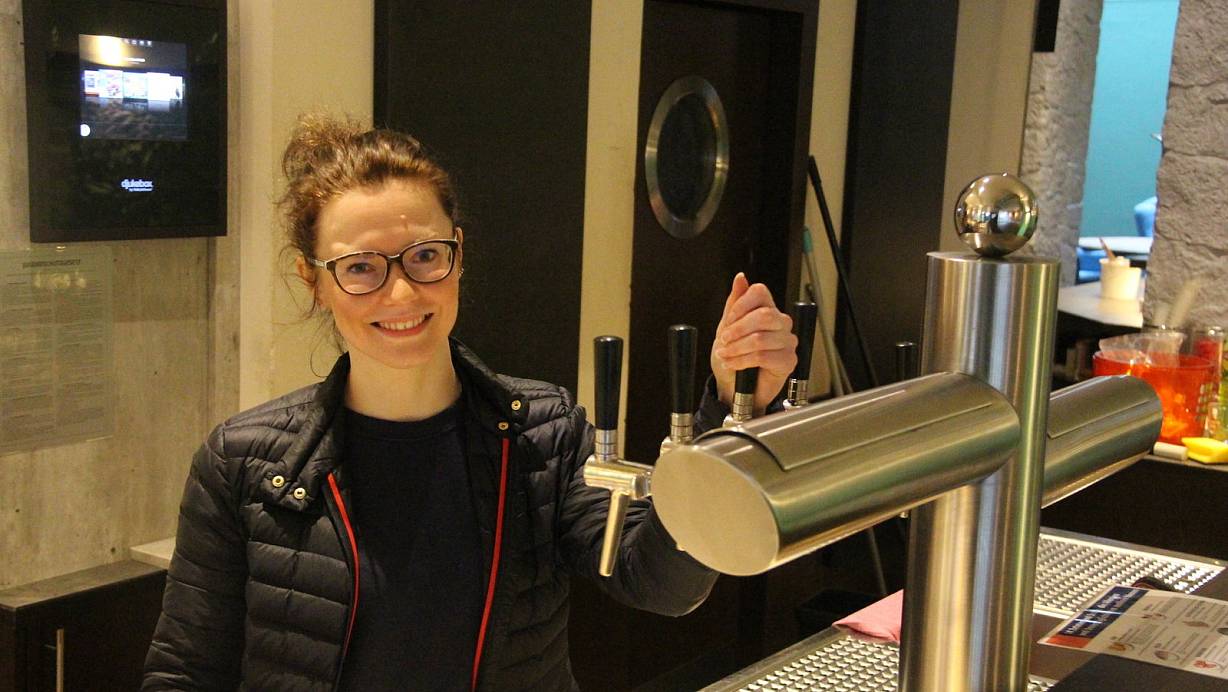 Anna Alexander in der Bar, die jetzt ihren Namen trägt. Zapfhahn, Tresen und Mobiliar kann die 31-jährige Neugastronomin vom Vorgänger übernehmen. | © David Schellenberg