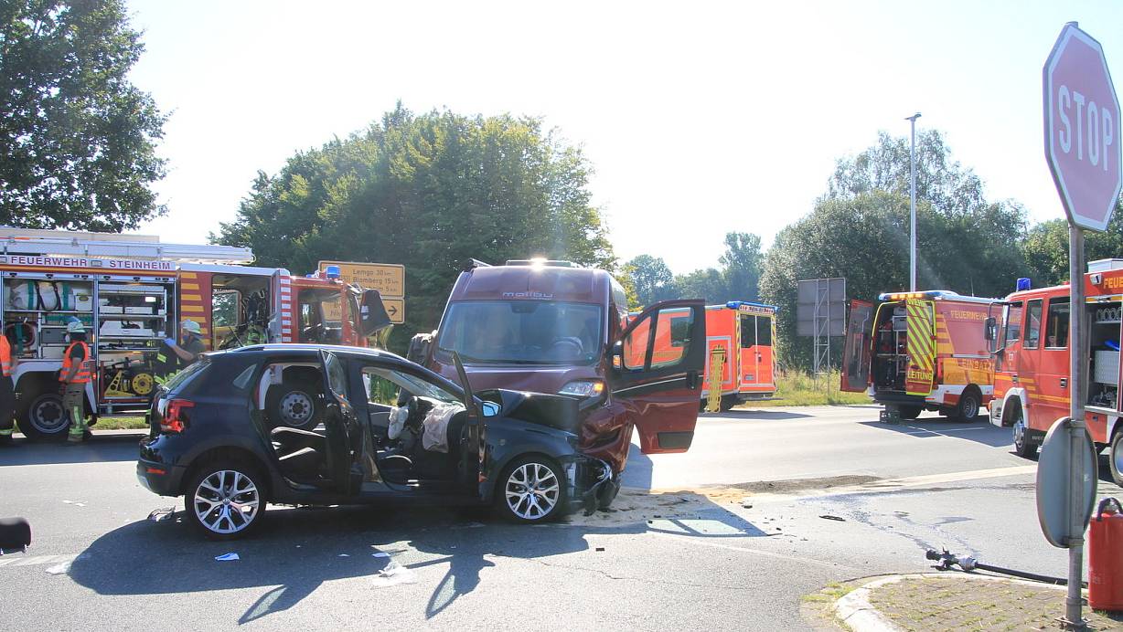 Nach ersten Angaben vor Ort wurde eine Polofahrerin eingeklemmt und musste von Einsatzkräften der Freiwilligen Feuerwehr Steinheim aus dem Fahrzeug befreit werden. Sie wurde nach notärztlicher Versorgung mit dem Rettungshubschrauber ins Krankenhaus geflogen.