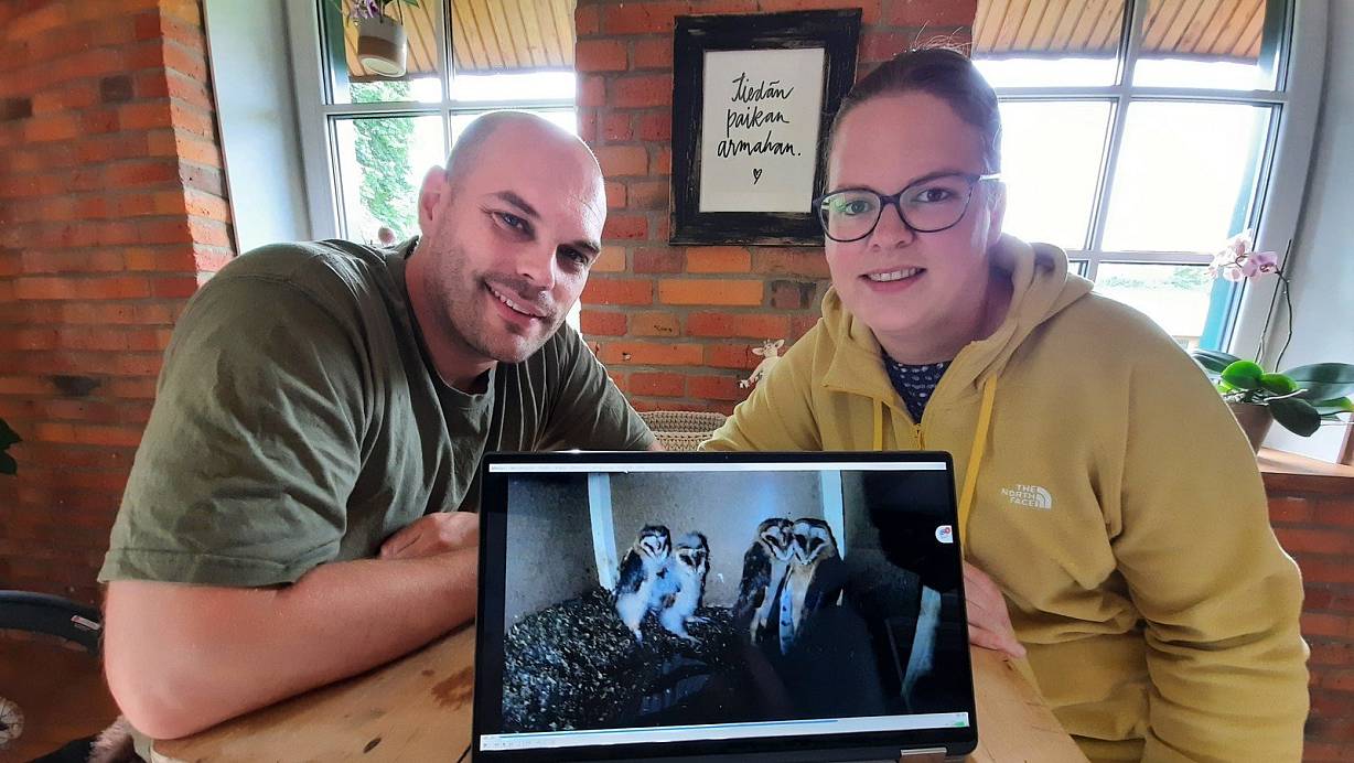 Das Paar hat auf dem Dachboden ihres alten Bauernhauses einen Nistkasten angebracht. Vor wenigen Wochen sind vier Junge geschlüpft.