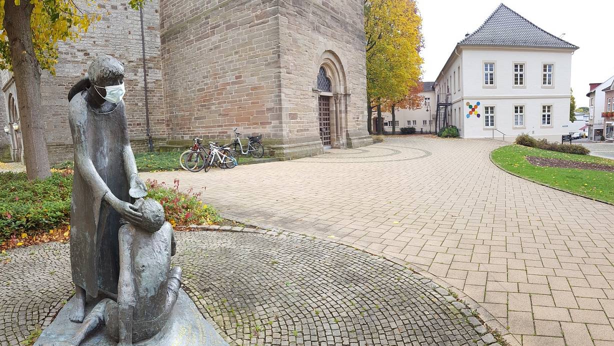 St. Rochus, der Schutzheilige für die Pesterkrankten, trägt in Steinheim eine Maske gegen die Ansteckungsgefahr. | © Madita Schellenberg