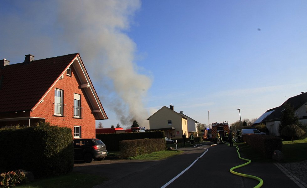 Steinheim-Eichholz. Die Rauchsäulen waren schon von Weitem zu sehen: Zu einem Garagenbrand in der Steinheimer Ortschaft Eichholz wurde die Freiwillige Feuerwehr am frühen Freitagabend alarmiert, wie die Polizei auf Anfrage von nw.de bestätigte. Weil gleich mehrere Garagen und ein dahinter liegender Holzanbau betroffen waren, in denen unter anderem Gasflaschen gelagert waren, rückte die Feuerwehr mit einem Großaufgebot an Kräften an.