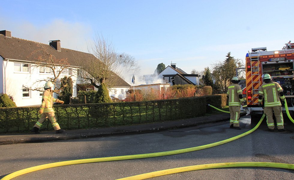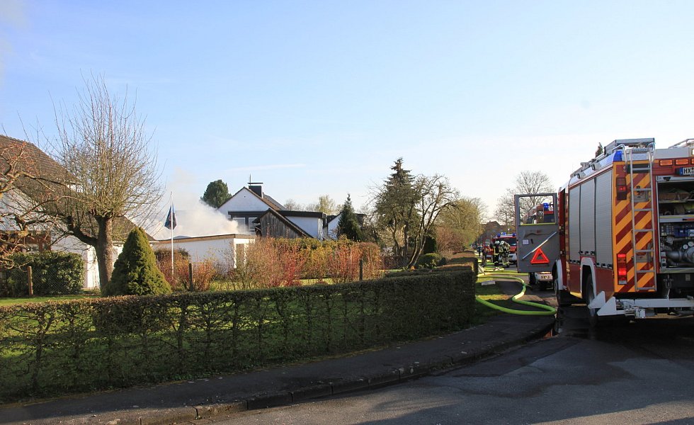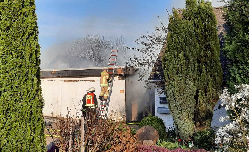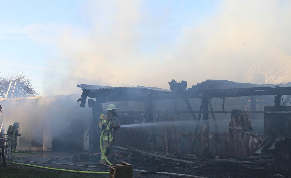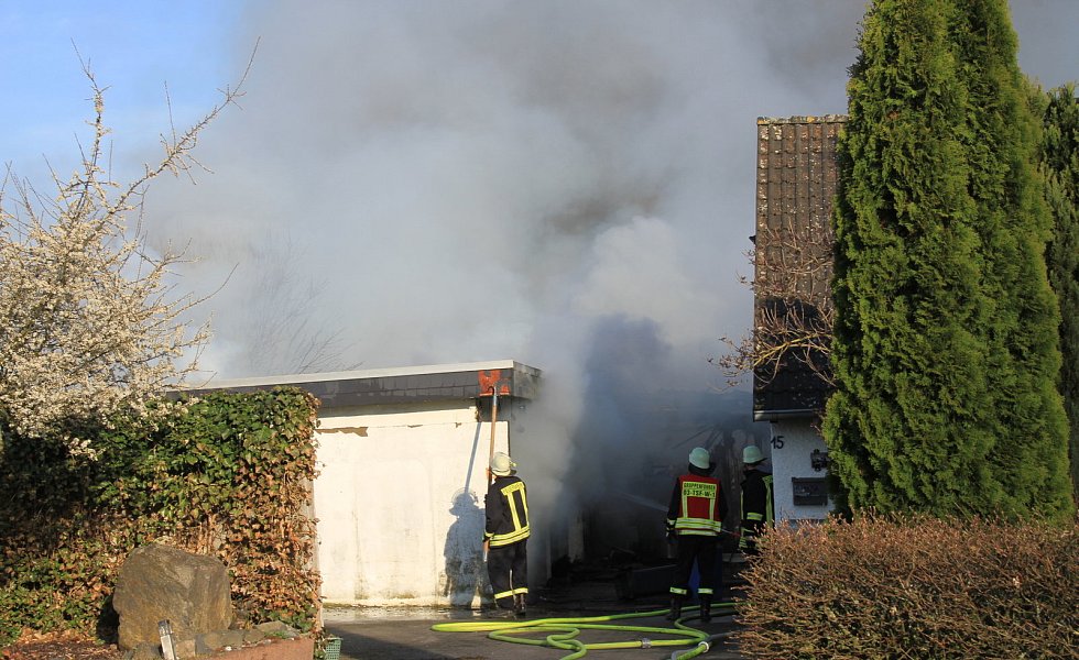 Zunächst hatte der 82-jährige Besitzer der Garagen noch versucht, den entstehenden Brand zu löschen, brach dies aber ab und fuhr sein Auto aus der Garage.