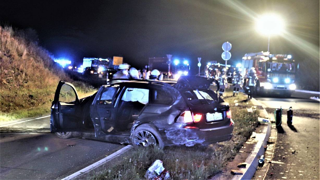 Erneut schwerer Unfall am Steinheimer Kreisel - Verletztensuche mit Drohne