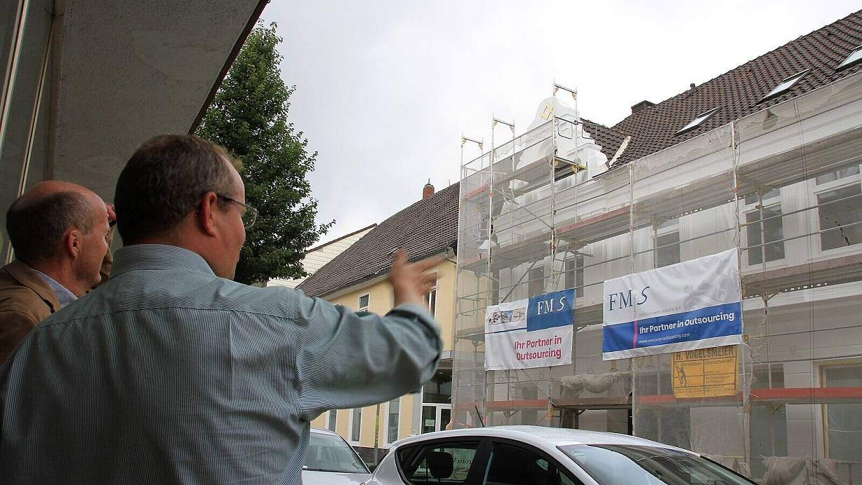 Spontane Begegnung: Ralf Kleine trifft während des Pressegesprächs den Unternehmer Friedrich Meißner, der gerade rund 100 Arbeitsplätze in der Innenstadt geschaffen hat. | © David Schellenberg