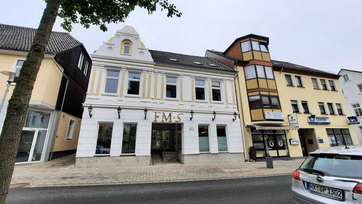FMS – „Friedrich Meißner & Sohn – Ihr Partner in Outsourcing“ steht seit jetzt golden über der City-Passage in Steinheim. | © Madita Schellenberg