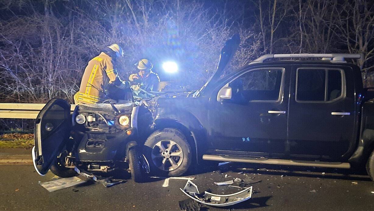 Der Nissan Navara krachte frontal in den kleinen elektrischen Stadtwagen. | © David Schellenberg