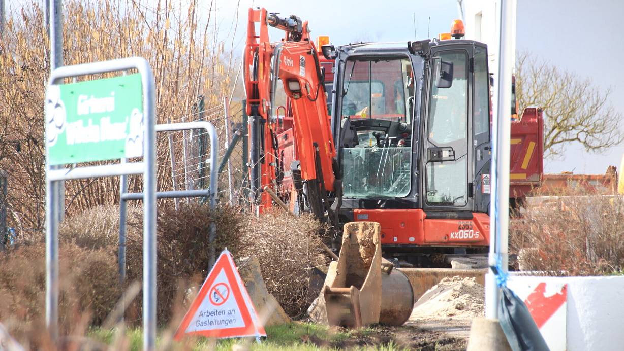Ein Bagger erwischt am Montagvormittag eine Gasleitung. Ein Sonderpostenmarkt und mehrere Häuser mussten evakuiert werden.