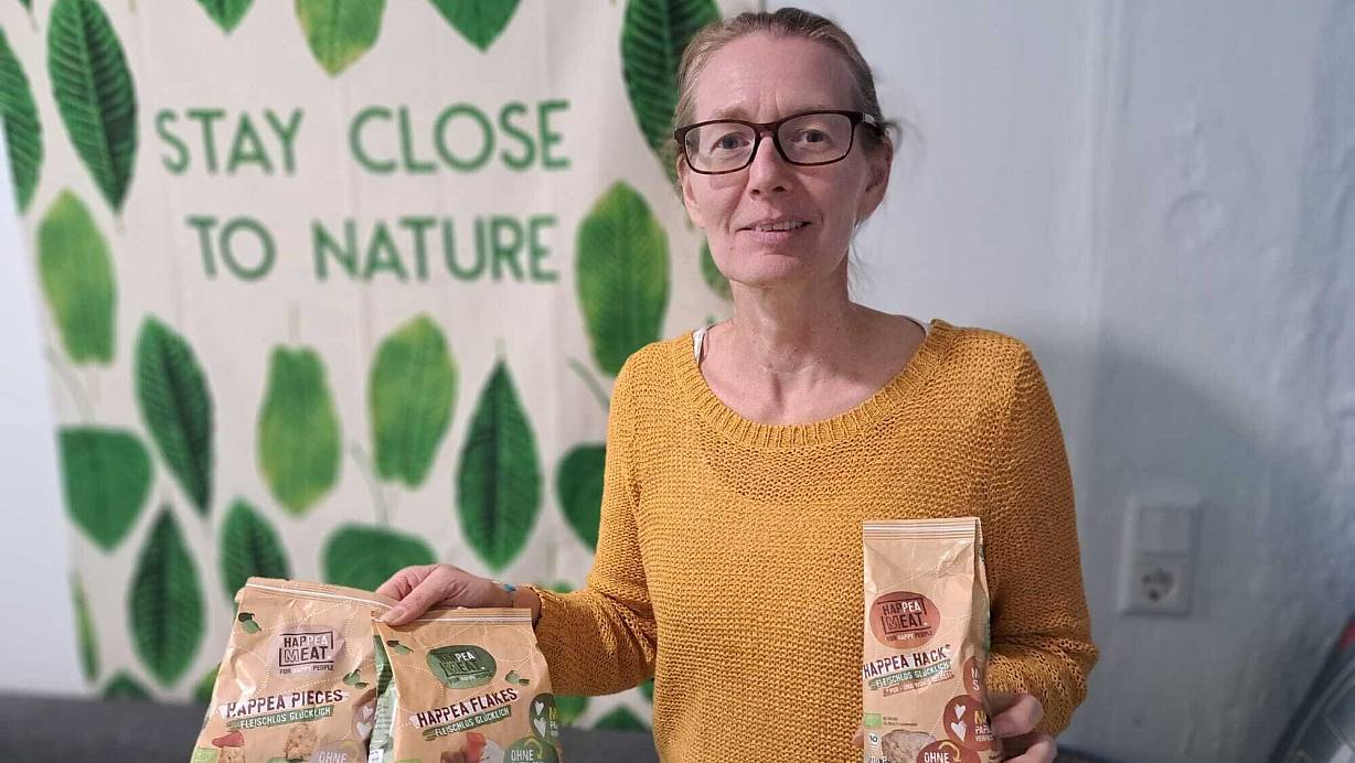 Camilla Pfaffhausen leitet gemeinsam mit ihrem Kollegen Reinhard Pfaffenberg das Unternehmen Happea Meat in Steinheim. Dort werden verschiedene Fleischalternativen produziert. Nachhaltig, gesund und lecker sollen diese sein. | © Happea Meat