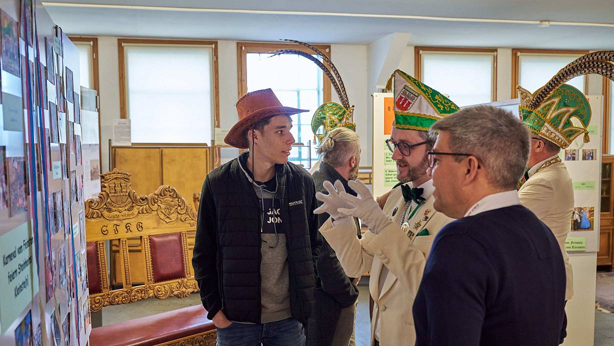 Die Eröffnungsrede hielt Frederik Bräkling, der zusammen mit dem Archiv-Team die Ausstellung organisiert hatte. Er stimmte auf die bevorstehende Ausstellung ein, indem er davon erzählte, wie die meisten ihren ersten Kontakt zum Karneval hatten: Meist durch die Feier in den Kindergärten und in der Grundschule Steinheim. Dort bringt das Kinderprinzenpaar die Herzen der ersten kleinsten Närrinnen und Narren zum Schlagen. „So wird der erste Keim des Karnevals in die Herzen gepflanzt. Deswegen ist das Kinderprinzenpaar etwas ganz besonderes und überaus wichtig für den Karneval“, erklärt StKG-Präsidiumssprecher Marc Schriegel.