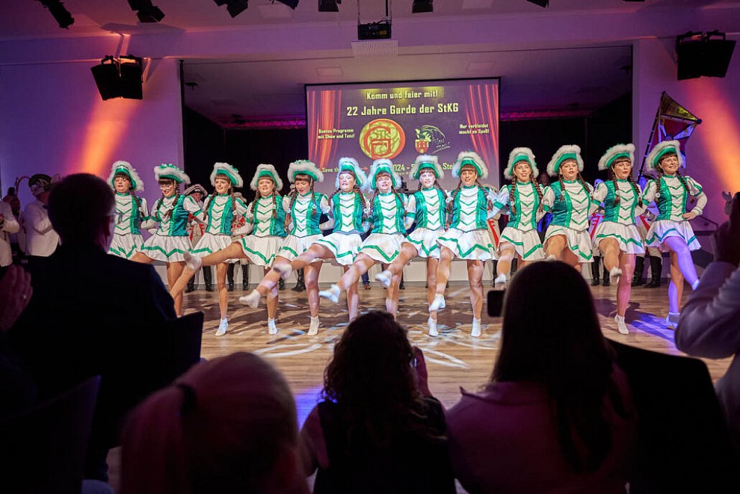 Neben den zahlreichen Ehrungen im Elferrat hatte dieses Jahr die Garde der StKG auch einen Meilenstein zu verbuchen. Mit der Gründung der Garde im Jahr 2001 können sie nun ihr 22-jähriges Bestehen feiern. Zu diesem Anlass wurde allen Gründungsmitgliedern jeweils der neue 22-Jahresorden der Garde verliehen. Das Jubiläum soll am 2. Februar 2024 in der Stadthalle Steinheim gefeiert werden.