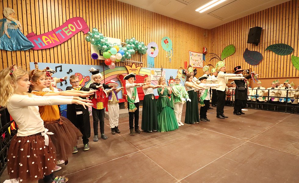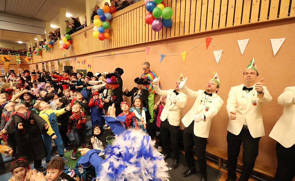 Steinheim. Immer wieder, wenn die Schüler, Lehrer, Eltern und der Elferrat den Karnevalsruf „Man teou“ durch die Grundschul-Turnhalle riefen, erreichte die Lautstärke kritische Bereiche. Und sei riefen ihn oft beim großen Schulkarneval in Steinheim am Freitagvormittag.