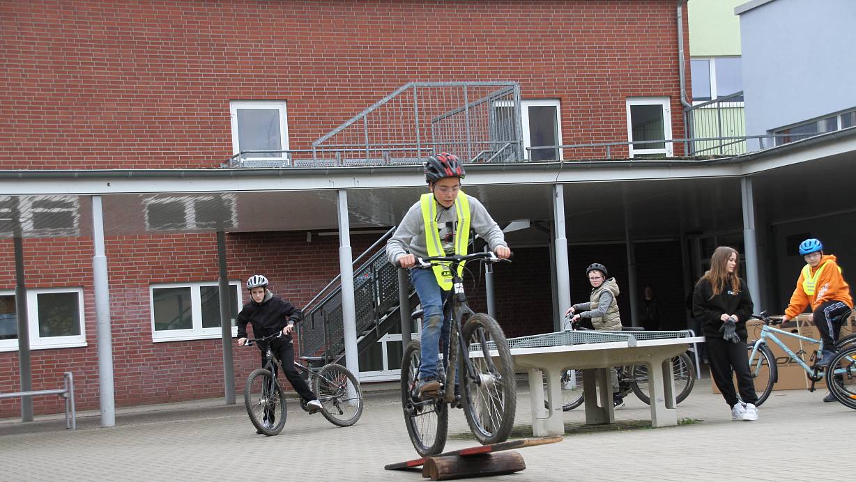 Das Radeln über Rampen und Reifen klappt bei den Steinheimer Realschülern so gut, dass sie bereits an den nordrhein-westfälischen Schulmeisterschaften teilnehmen konnten – und auf dem zweiten Platz landeten. Das wiederum qualifizierte sie im vergangenen Jahr für die Deutschen Schulsportmeisterschaften: „Ein eindrucksvolles Event in Berlin“, erzählt Breuer.