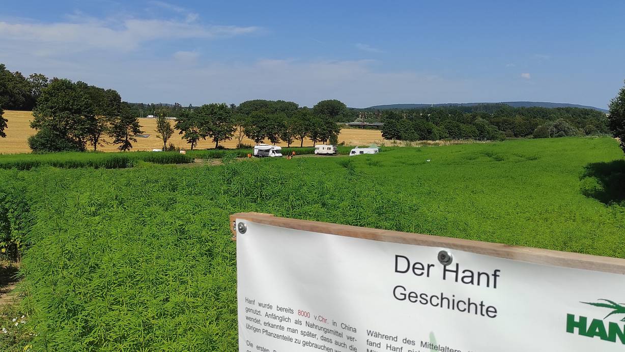 Das Hanf-Labyrith rückwärtig der Steinheimer Hanfzeit im vergangenen Sommer. Auf Infotafeln können sich Besucher über den Rohstoff informieren. | © Svenja Ludwig