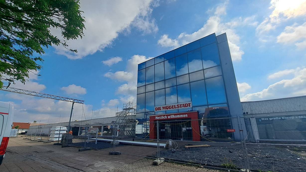 Noch steht „Möbelstadt“ dran – bald dann „Möbel Heinrich“. Im Inneren tut sich derzeit viel. | © Madita Schellenberg