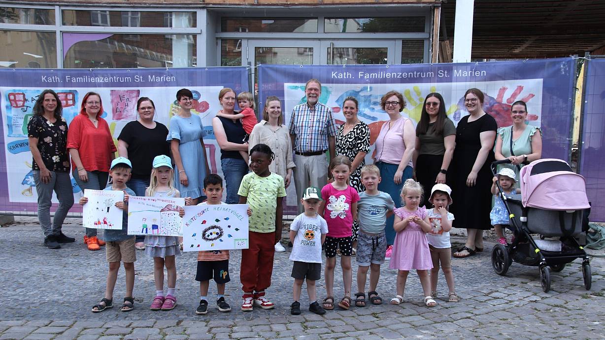 Das Stadtmarketing und die Kitas in Steinheim freuen sich über das überaus bunte Ergebnis ihres Projekts. Beim Aufhängen der Bilder halfen übrgens auch Akteure des benachbarten Klön-Cafés - eine echte Gemeinschaftsaktion. | © Madita Schellenberg