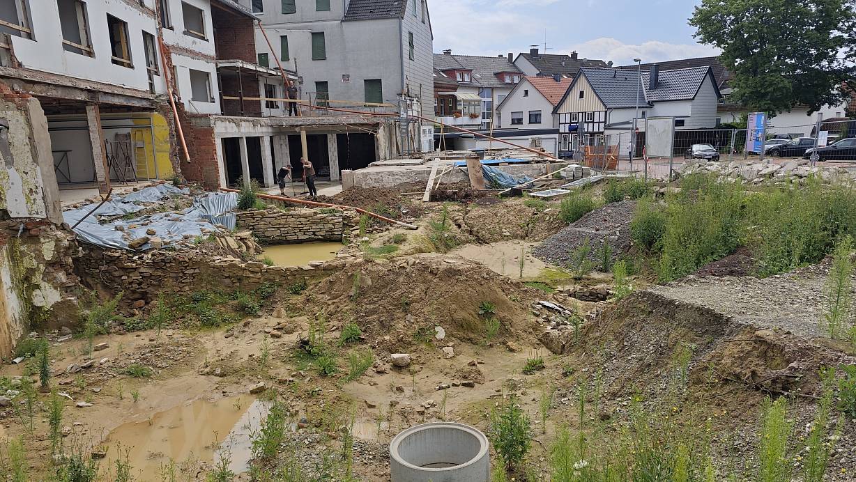 Im Hinterhof sollen Tiefgarage und Mehrgenerationengarten entstehen. Hier sind die mittelalterlichen Mauerreste zu sehen, die der Verwaltung und dem Planungsbüro Kopfzerbrechen bereiteten. | © Svenja Ludwig