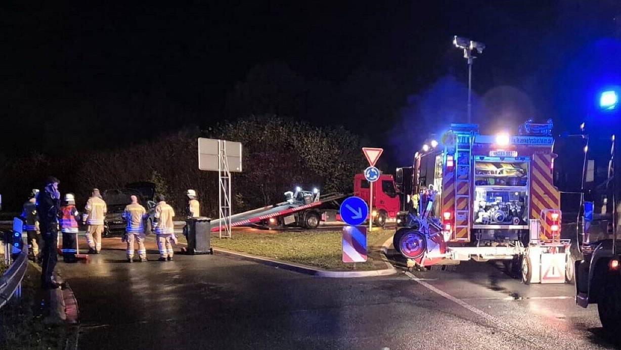 Geradeaus statt im Kreis: Unbekannter hinterlässt großes Trümmerfeld am Steinheimer Kreisel