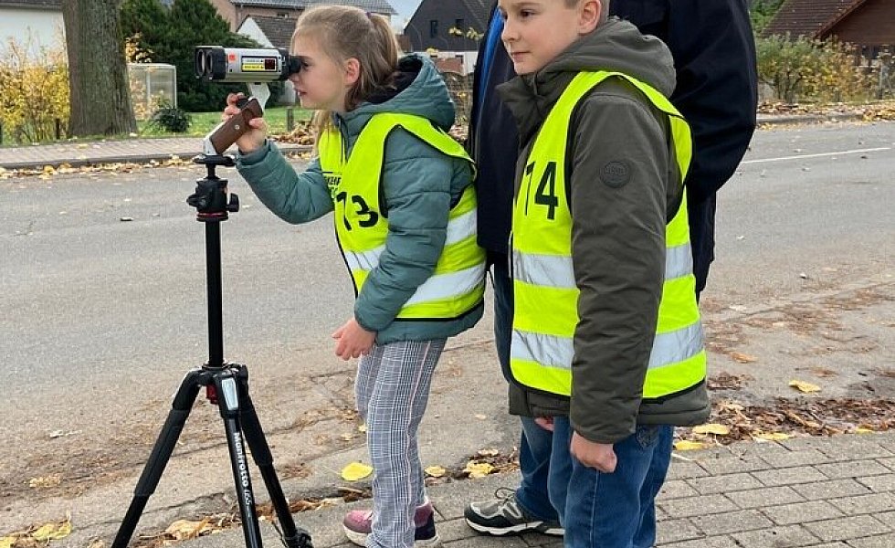 Passend zu Halloween hat der Verkehrsdienst der Polizei im Kreis Höxter gemeinsam mit Grundschulkindern eine "Süßes oder Saures"-Aktion durchgeführt. Zusammen mit den Kindern wurden Geschwindigkeitskontrollen in Höxter-Albaxen auf der Hansastraße stadteinwärts aus Stahle kommend durchgeführt.