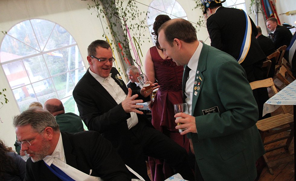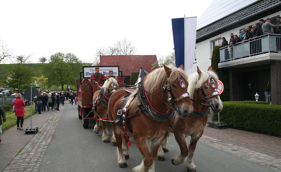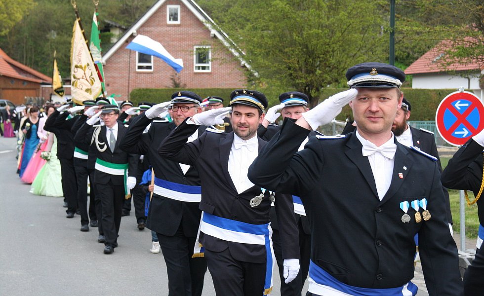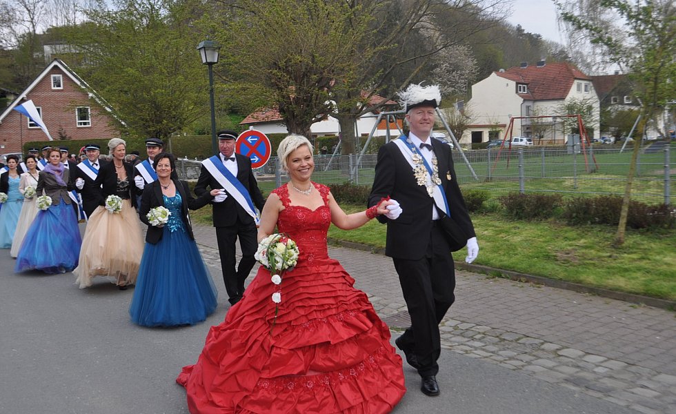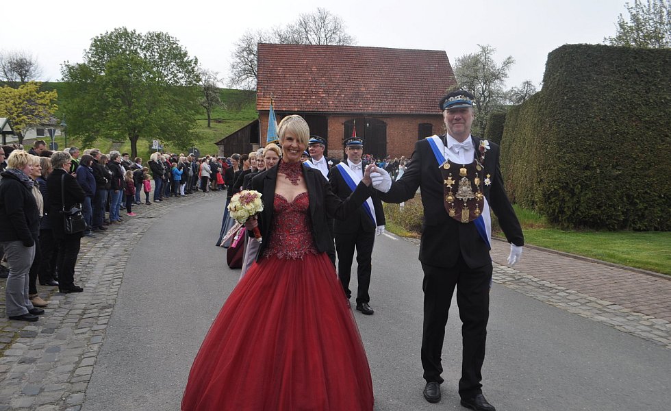 Unter großem Applaus zogen das Stadtschützenkönigspaar Bärbel und Rainer Schnückel und die Abordnungen der 14 weiteren Warburger Vereine durch das Dorf. Danach ging's zum Feiern in die festlich dekorierte Holsterbachhalle. Bei flotter Partymusik der Band CTB tanzten die Calenberger Schützen und ihre Gäste aus dem Stadtgebiet ausgelassen in den Mai.