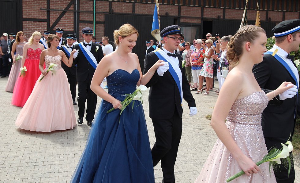 Am Sonntag ließen sich Rasche und seine Freundin Julia Peine (23) beim großen Festumzug vom Schützenvolk bejubeln. Auch wenn das Marschieren bei den hohen Temperaturen nicht immer angenehm war - der Stimmung tat's keinen Abbruch. Der Hofstaat: Michael Busch und Jaqueline Liebel, Georg Nolte und Hanna Thöne, Tim Pellny und Christina Fögen, Kevin Piepenbrock und Jaqueline Flore, Tom Rose und Kira Salzmer, Christoph Schnückel und Janina Piepenbrock, Sebastian Schnückel und Sophie Tillack, Pascal Skroch und Ronja Bunse, Maik Wilke und Ann-Dorina Rasche-Wilke, Matthias Wilmes und Teresa Busch, Michael Zwirna und Lena Pellny.