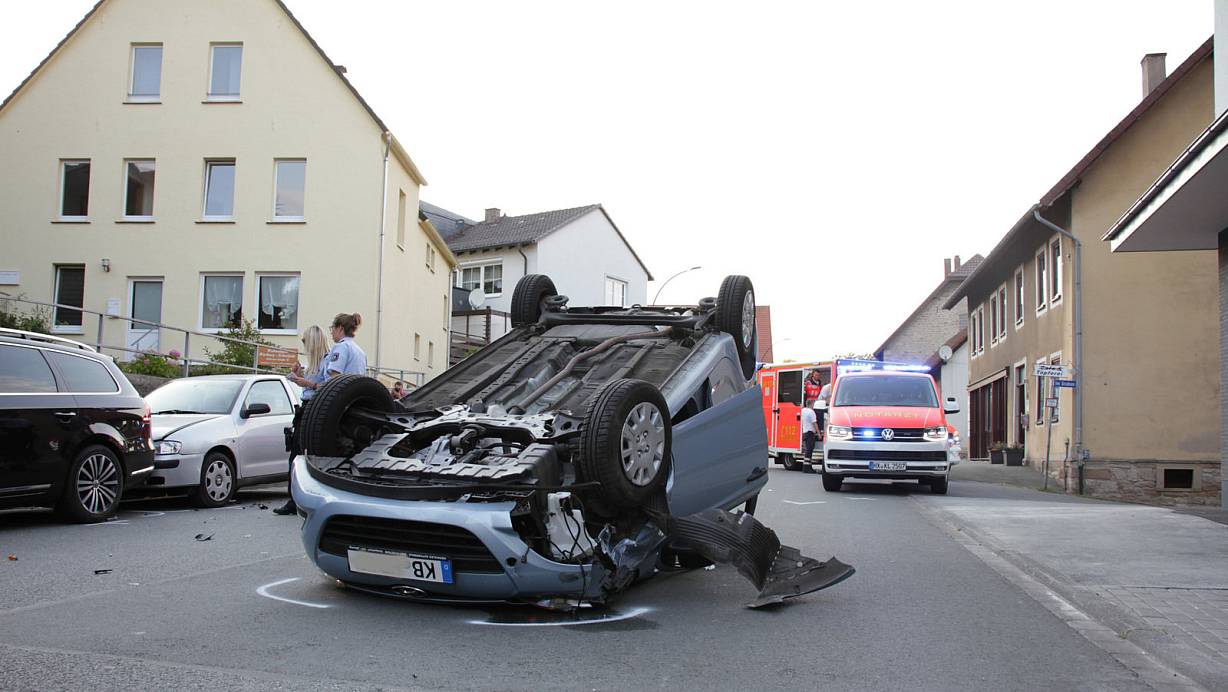 Auto bleibt nach Unfall in Scherfede auf dem Dach liegen