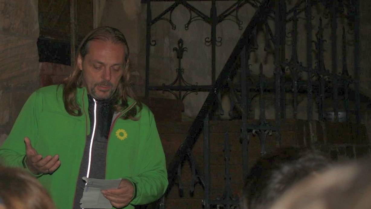 Mahnwache: Ricardo Blaszczyk, Sprecher der Grünen im Kreis Höxter, warnte beim Protest am Ratskeller vor fundamentalistischem Gedankengut. | © Dieter Scholz