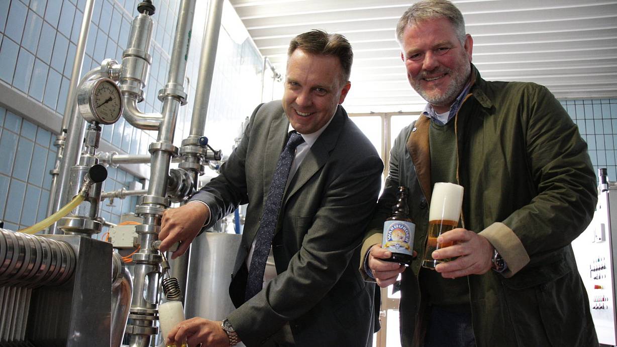Präsentation im Braukeller: Ein gelungenes Sommerbier, meinen die Geschäftsführer Franz-Axel Kohlschein und Michael Kohlschein. | © Dieter Scholz