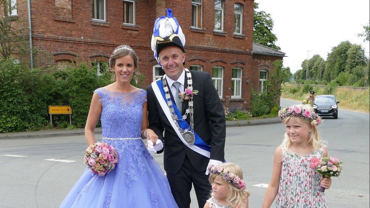 Vom Schütze zum König: Michael Schütze und seine Königin Vanessa Schütze mit ihren Kindern Nele (rechts) und Jule. | © Karin König