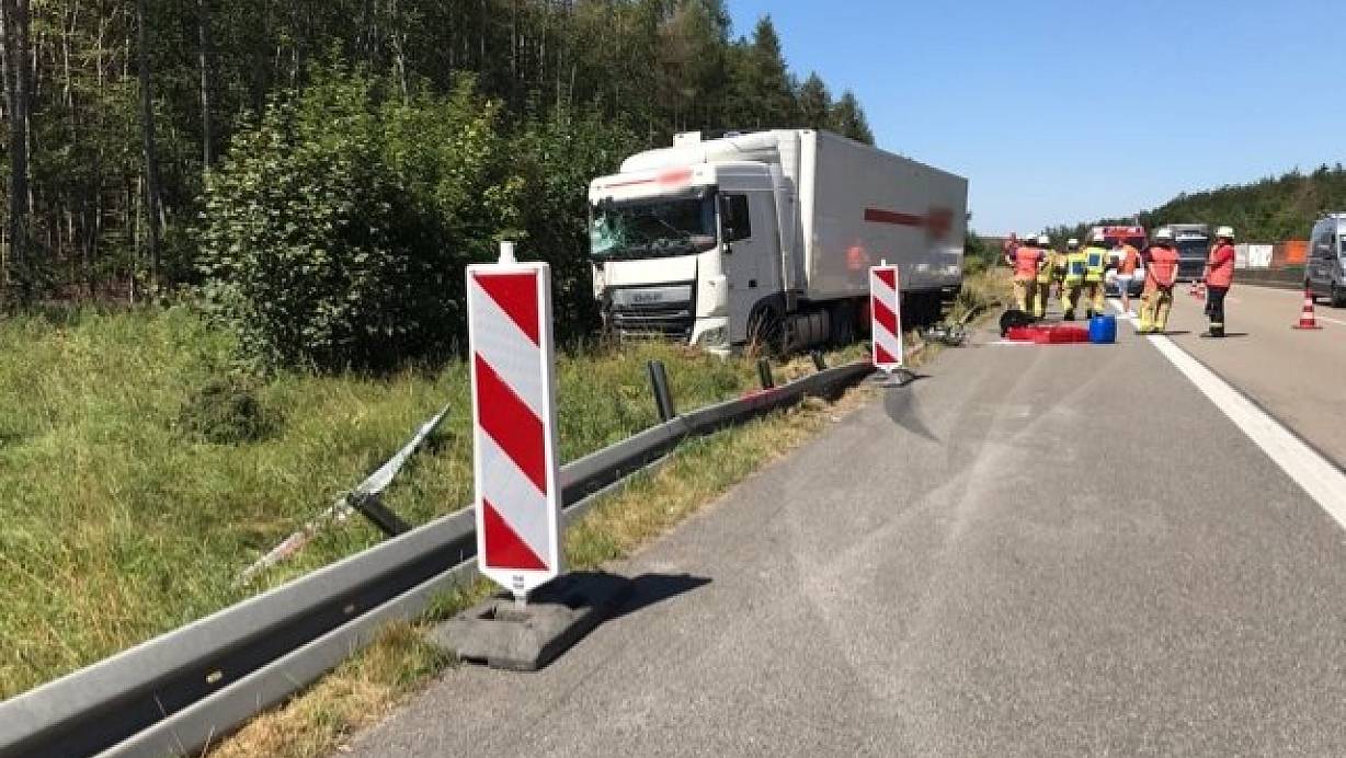 Rund 100.000 Euro Sachschaden sind bei dem Unfall am Dienstagmittag auf der A 44 entstanden, als ein Sattelszug auf den Seitenstreifen auf eine mobile Baustellen-Absperrung fuhr. | © Feuerwehr Warburg