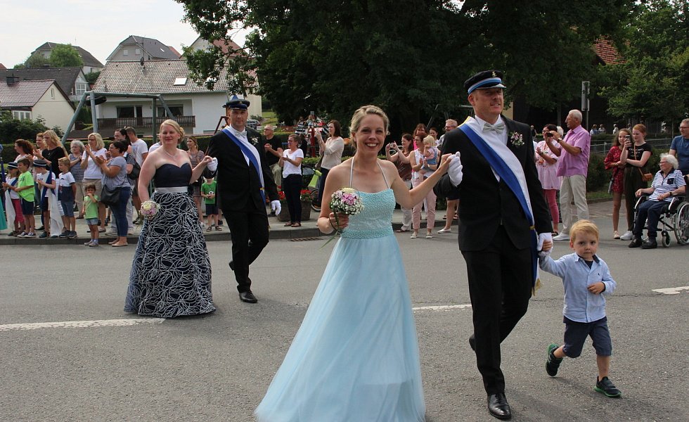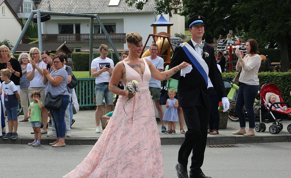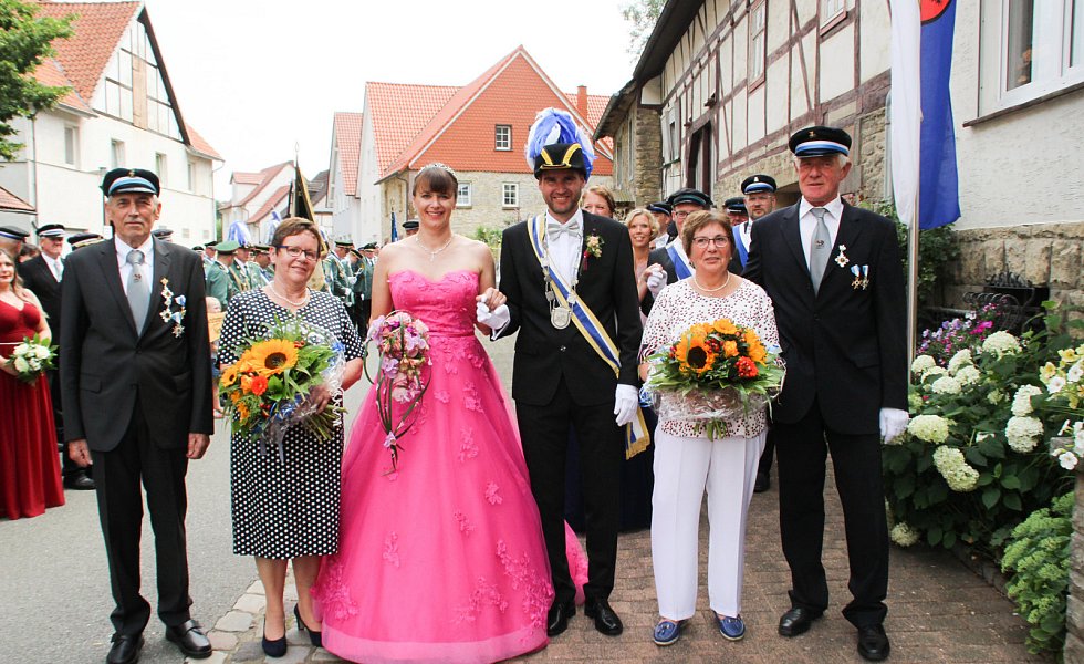 In seinen Hofstaat berief das Königspaar Robert und Sonja Wahle, Marcel Sachs und Silvia Hennecke, Nicolas und Daniela Lotze, Thomas Thöne und Nicole Janz, Henrik Egeler und Anne Lüther-Nusime, sowie Manuel Gerland und Julia Ruberg. Auch die Hofstaatpaare glänzten mit einem charmanten Lächeln während des Umzugs.
