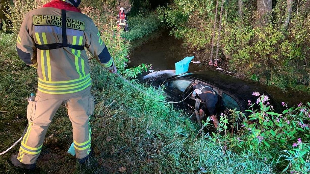 Warburg. In der Twiste bei Wormeln landete am Freitagabend gegen 22.30 Uhr ein 42-Jähriger mit seinem BMW und vier Mitfahrern, wie die Polizei im Kreis Höxter berichtet.
