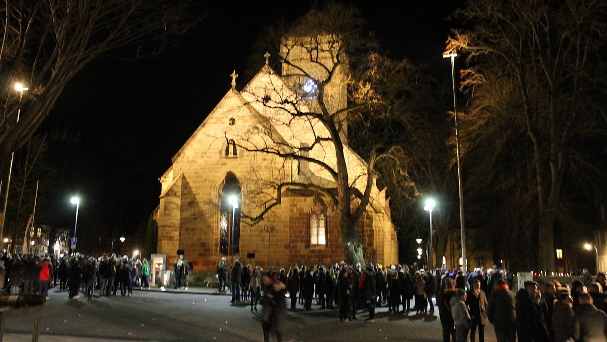Hunderte strömen am Dienstagabend zum ökumenischen Gedenkgottesdienst in der Volkmarser Marienkirche. | © Manuela Puls