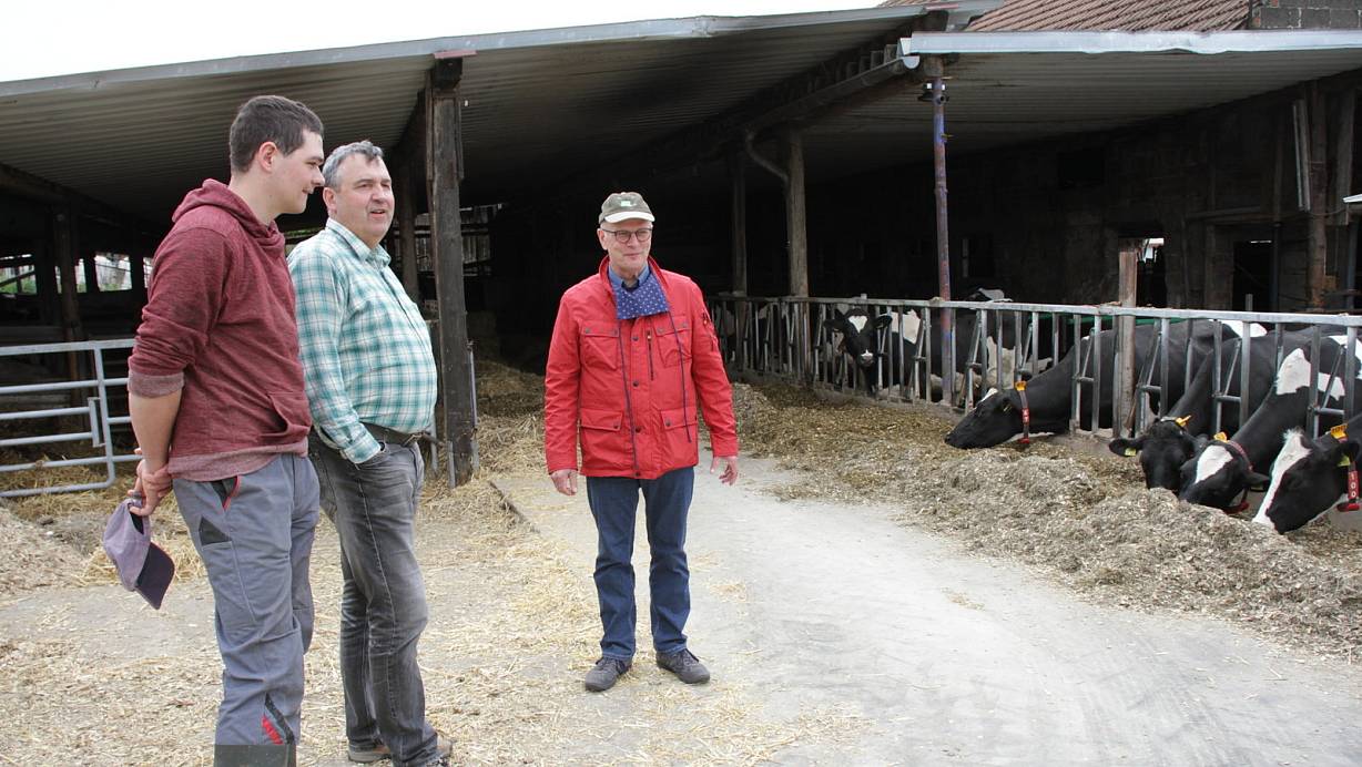 Peter (v. l.) und der neue WLV-Bezeirksvorsitzende Antonius Tillmann auf dem Bonenburger Berghof im Gespräch mit Amtsvorgänger Hubertus Beringmeier. | © Dieter Scholz