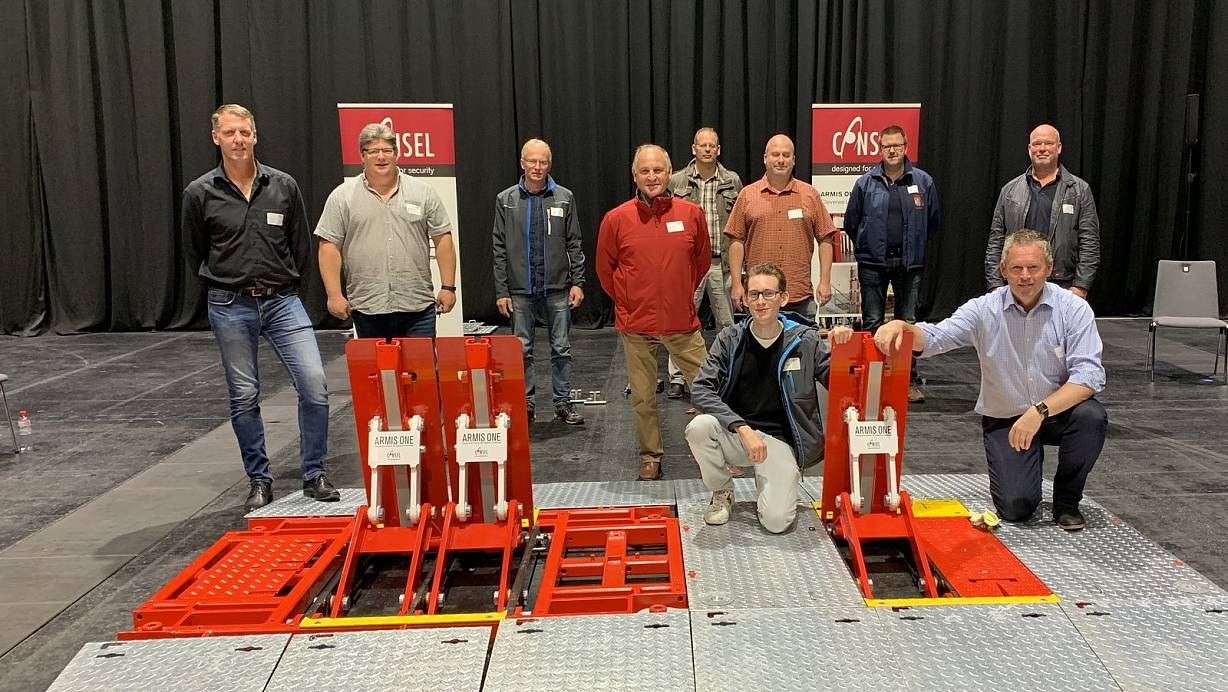 Verantwortliche aus Bad Arolsen, Breuna, Diemelstadt und Volkmarsen von Ordnungsämtern, Feuerwehren und Bauhöfen besichtigten Straßensperren bei den Herstellern.  | © Stadt Diemelstadt