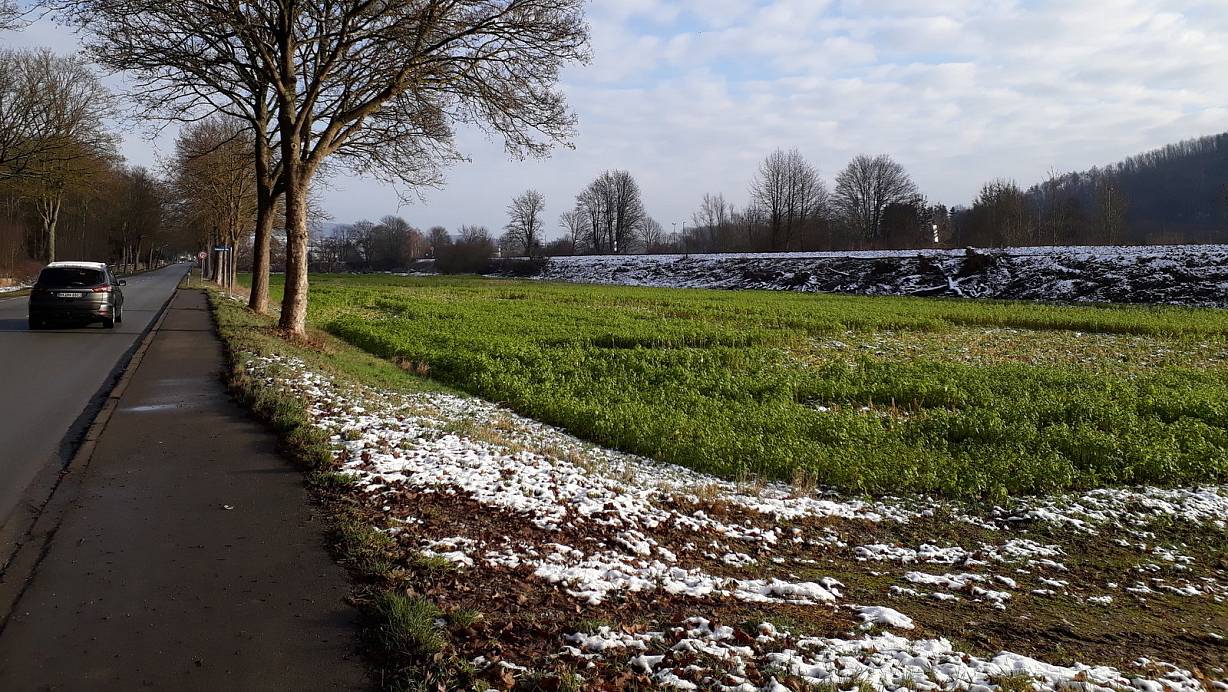 Die Fläche, um die es bei dem PV-Freiflächen-Antrag geht, an der Bundesstraße 7 kurz vor dem Ortseingang Scherfede. | © Simone Flörke
