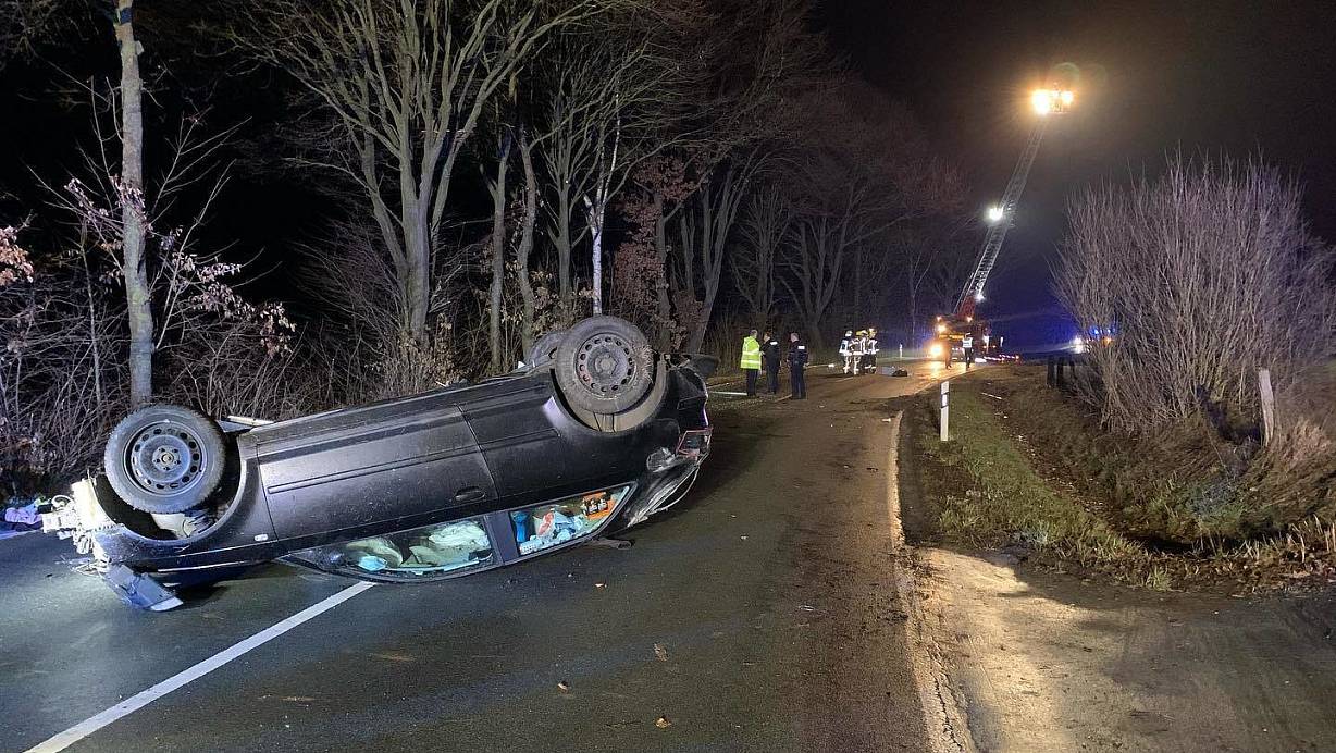Dadurch wurde das Fahrzeug hochgeschleudert und kam schließlich mitten auf der Fahrbahn auf dem Dach liegend zum Stillstand. Beherzte Zeugen, die nach dem Unfall auf die Unglücksstelle zukamen, leisteten dem schwer verletzten Mann sofort Erste-Hilfe. Mit dem Rettungswagen wurde er später in ein Krankenhaus gebracht. Das total beschädigte Fahrzeug wurde vom Abschleppdienst geborgen.