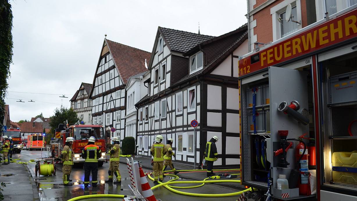 Großeinsatz der Feuerwehr beim Wohnhausbrand in der Warburger Altstadt. | © Nicole Niemann