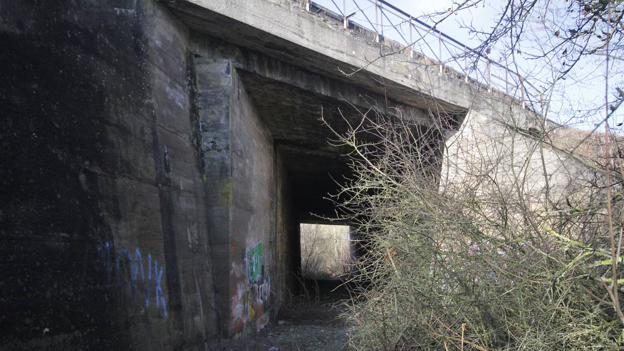 Zwischen dem Großenederer Weg und dem Oberen Hilgenstock führt zwischen den Warburger Industriegebieten West und Nord ein Tunnel über der früheren Bahnstrecke Warburg-Volkmarsen unter den Gleisen der Strecke Warburg-Altenbecken hindurch. | © Dieter Scholz