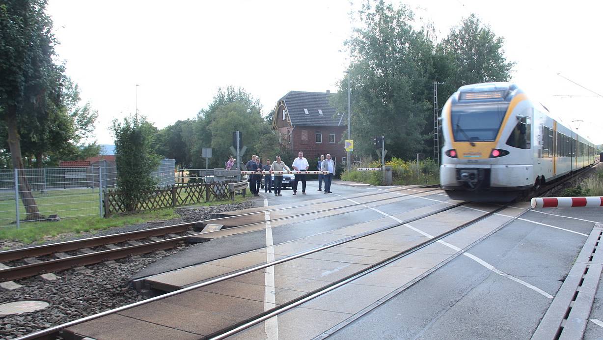 An einem der beiden Bahnübergänge in Menne: Die Ortschaft ist durch die Gleise zweigeteilt. Durch die geplante Verbindung „Kurve Kassel" könnten die Bahnschranken noch häufiger unten bleiben – und der Lärm steigen. | © Burkhard Battran