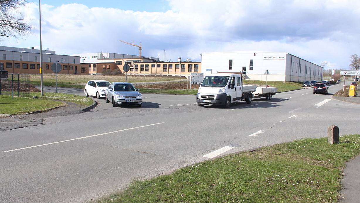 Die Industriestraße (vorn) ist vorfahrtsberechtigt. Der Verkehr aus dem Speckgraben muss halten. Künftig soll ein Kreisel die Situation ausgleichen. | © Burkhard Battran