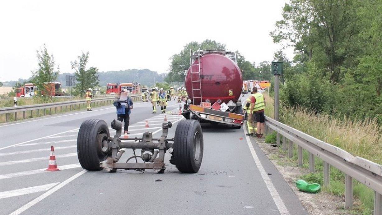 Achse verloren: Verkehrschaos nach Unfall mit Gefahrgut-Lkw bei Warburg
