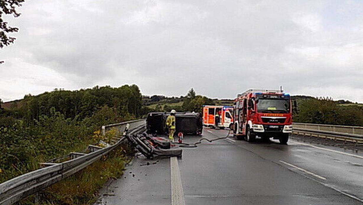 Nach Polizeiangaben kam sie aus ungeklärter Ursache nach rechts von der Fahrbahn ab und stieß gegen die Leitplanke. Sie verlor beim Gegenlenken die Kontrolle über das Fahrzeug, stieß erneut gegen die Leitplanke. Das Auto kippte dadurch auf die linke Fahrzeugseite.