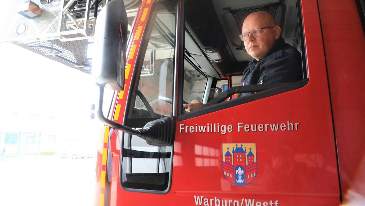 Warburgs Feuerwehrleiter, Stadtbrandinspektor Jürgen Rabbe, am Steuer der Drehleiter. | © Simone Flörke
