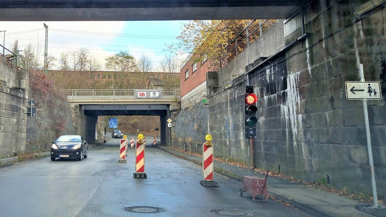 Die Arbeiten an der Eisenbahnbrücke haben begonnen – der Verkehr läuft nur noch einspurig und wird per Ampel geregelt. | © Simone Flörke