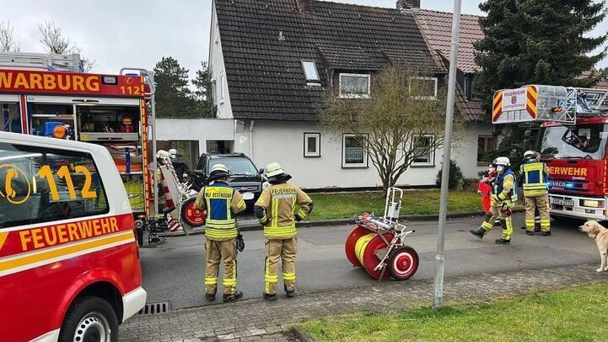 30 Feuerwehrleute sind am Samstag wegen des Kellerbrandes im Einsatz. | © Feuerwehr Warburg