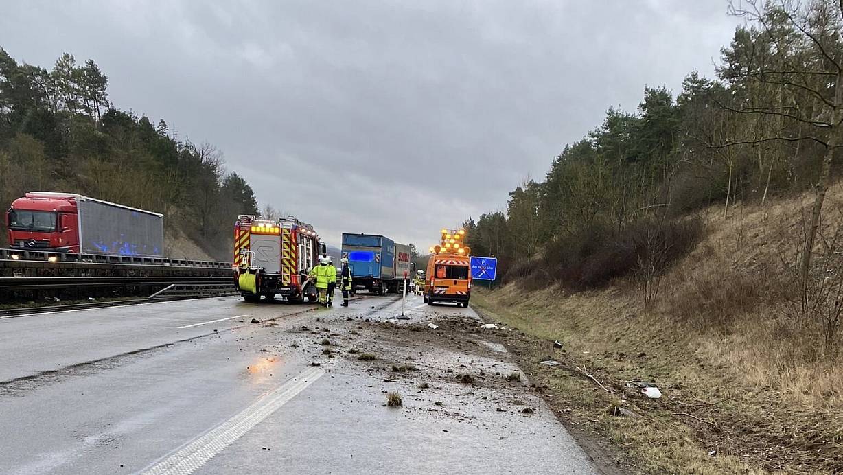 Stau und Umleitung: 50 Meter Leitplanke und Erdreich landen auf der Fahrbahn der Autobahn 44 bei Warburg.